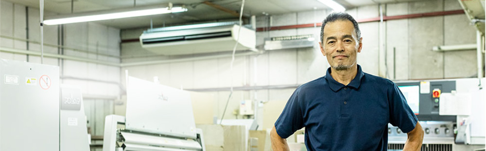 - 自分が思う通りの高品質で綺麗な作業が出来たときや、品質、技術、時間的に困難な作業を任されたとき、またそれを達成したときですね。基本的に「もの作り」が大好きなので、その過程そのものが「やりがい」かもしれません。断裁を担当していますが、「もの作り」に関われる今の仕事は自分にあっていると思います。